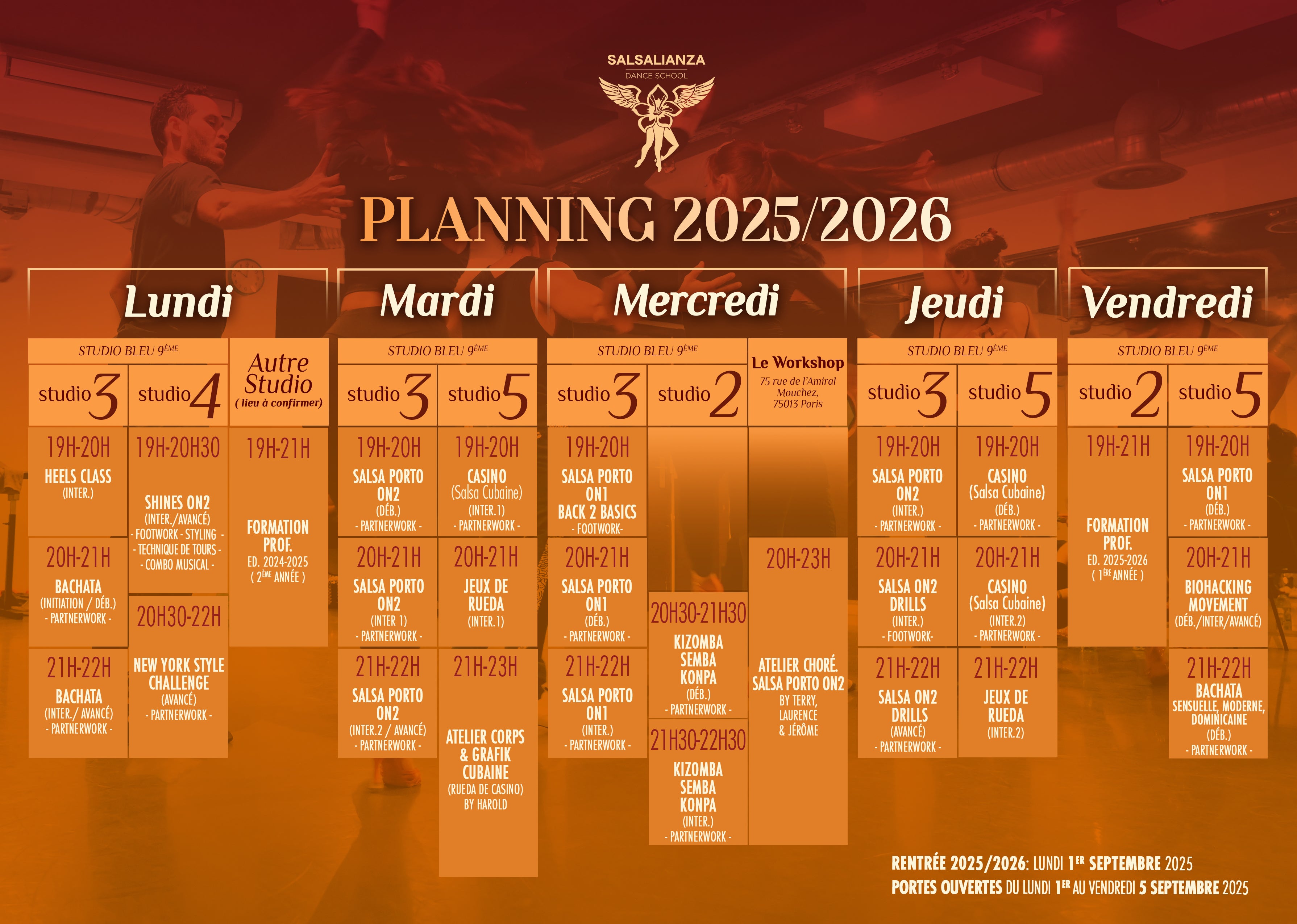 Vous pouvez : vous inscrire à notre newsletter mensuelle, télécharger notre application salsalianza ou nous suivre sur Instagram et Facebook pour recevoir toutes les infos sur les stages, soirées, spectacles et actualités de l’école.