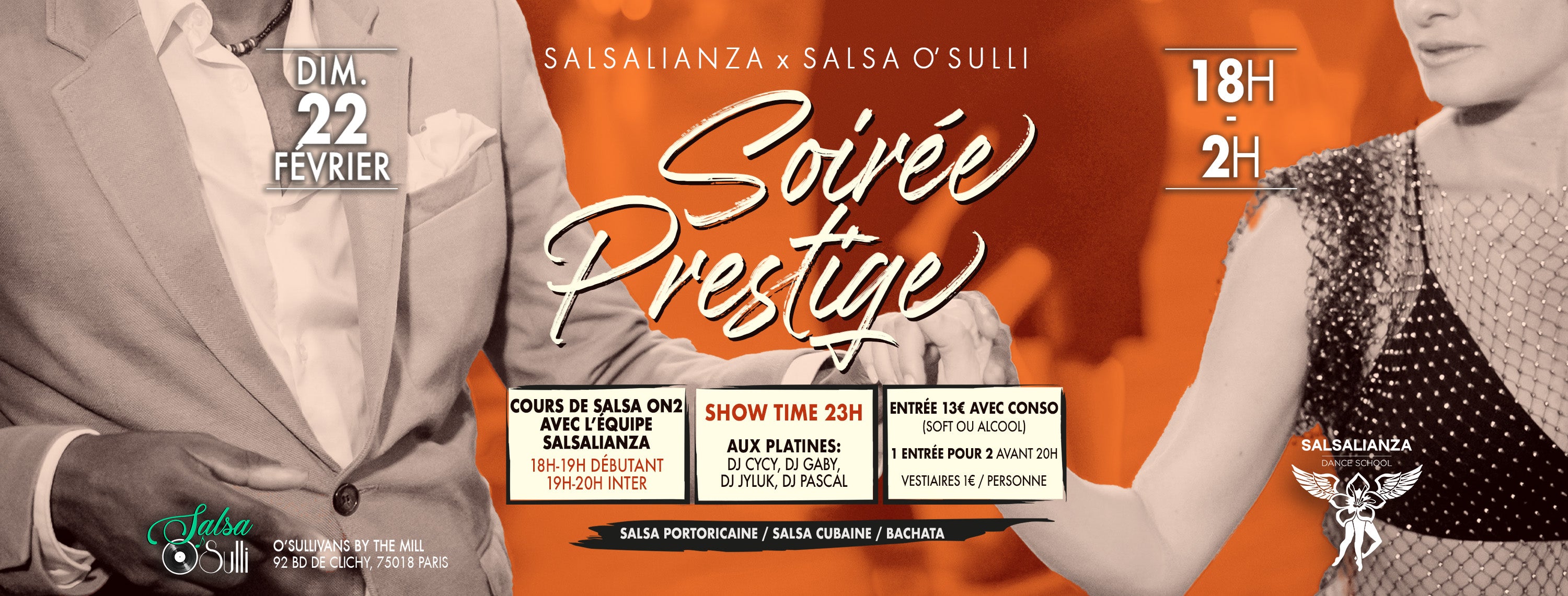 • DIMANCHE 22 FÉVRIER 2026 SOIRÉE (PRESTIGE) SALSALIANZA x SALSA O'SULLI
