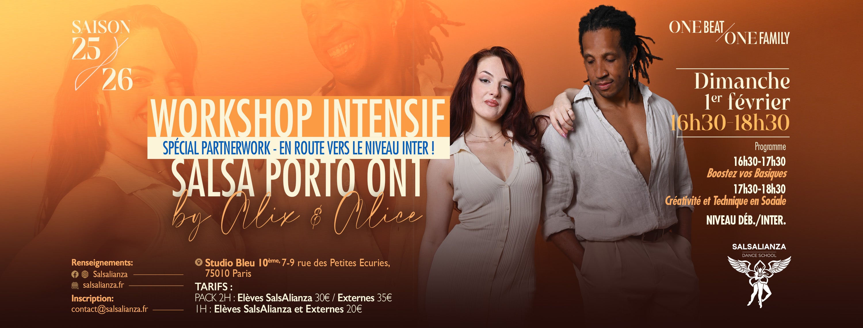• DIMANCHE 01 FÉVRIER 2026WORKSHOP INTENSIF SALSA PORTO ON1 BY ALICE & ALIX